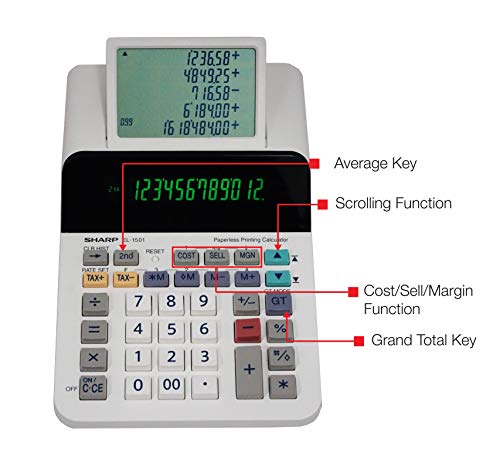 Details: Paperless printing calculator with a 12-digit display features a unique, powerful design that combines the power of a printing calculator with the functionality of a desktop calculator. The large five-line, secondary LCD allows you to scroll back and forth up to 300 lines to refer back to your previous calculations. Cost/sell/margin keys simplify profit margin calculations by allowing you to simply enter two variables to automatically show the third variable. Battery-operated design with included batteries eliminates the need for an electric cord to use this calculator anywhere you need. Contoured keyboard helps you accurately input data for easy calculations. Calculator also includes four-key memory, tax keys, change sign key, backspace key, grand total with selector, rounding function and more.